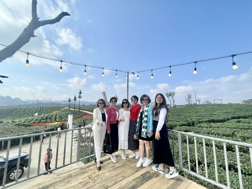 Ngày 2: Sau khi ăn sáng tại Happy Land, chúng tớ di chuyển ra khu du lịch điểm check in mới khai trương là Mocha Hill. Đây là khu du lịch mới mở, có café và các loại đồ uống. Khu mới nên chưa cho nhiều điểm check in. Tuy nhiên, 1 số điểm đã làm xong thì khá là đẹp, với đồi chè bát ngát, cầu thang lên trời, có cây hồng sai trĩu quả để cho các bạn đến tham quan, check in chụp ảnh.