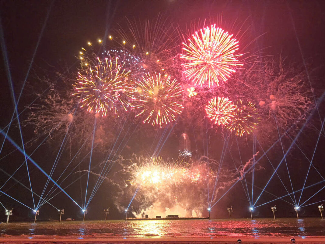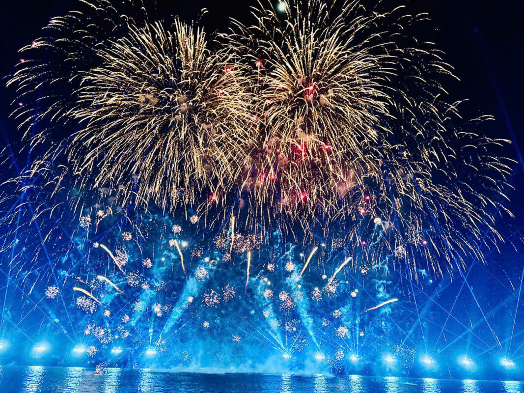 1/4 show diễn đầu thì không có gì quá đặc sắc, các nghệ sĩ biểu diễn Jetski quanh sân khấu nước. Tuy nhiên, càng về phía cuối show thì càng thu hút người xem bởi màn trình diễn bắn pháo hoa vô cùng mãn nhãn & độc đáo.